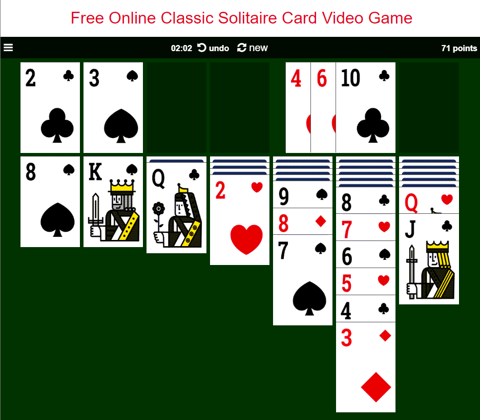 The first game accessible on Solitaire.org is Classic Solitaire, the one and only Windows solitaire card game you most certainly know. Playing it online and for free is easy here. Because the first deal is loaded instantly when you connect to the website. Don’t worry, if you do not like this deal, just click the “new” button to get another hand in a second. That is a helpful time-saver!